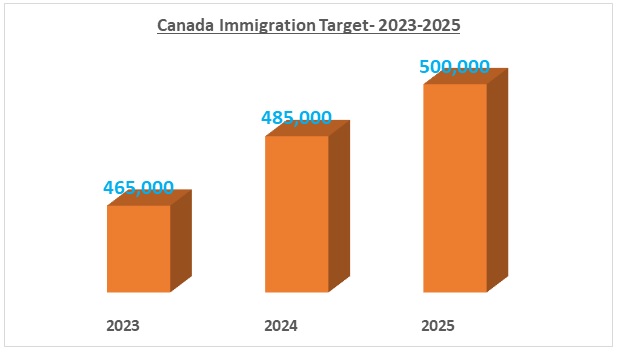 As per Canada immigration levels plan 2023-2025, the IRCC will accept 465,000 new permanent residents in 2023, this target will further rise to 485,000 in 2024 and in the year 2025, Canada will admit 500,000 new permanent residents. The Provincial Nominee Programs (PNPs) of Canada will also invite 105,500 newcomers in 2023.