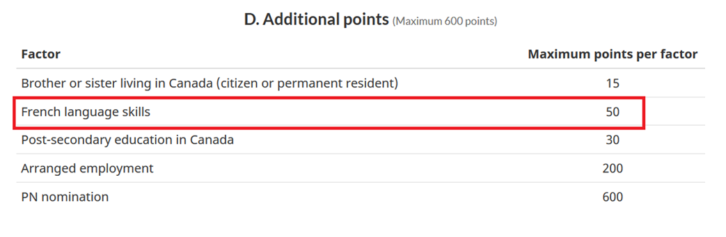 For the first official language factor in EE system, you can get up to 160 points. Moreover, you can obtain 50 additional points for the French language skills.