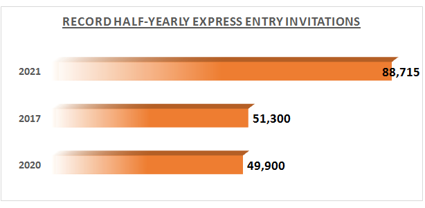 Canada’s Express Entry immigration system has completed six months of issuing ITAs (Invitations to Apply) in 2021, and so far, the year has been outstanding for many reasons. The Immigration Refugees and Citizenship Canada (IRCC) has smashed many past records and set new records in terms of the issued invitations in particular. Let us analyse the same with a closure look.