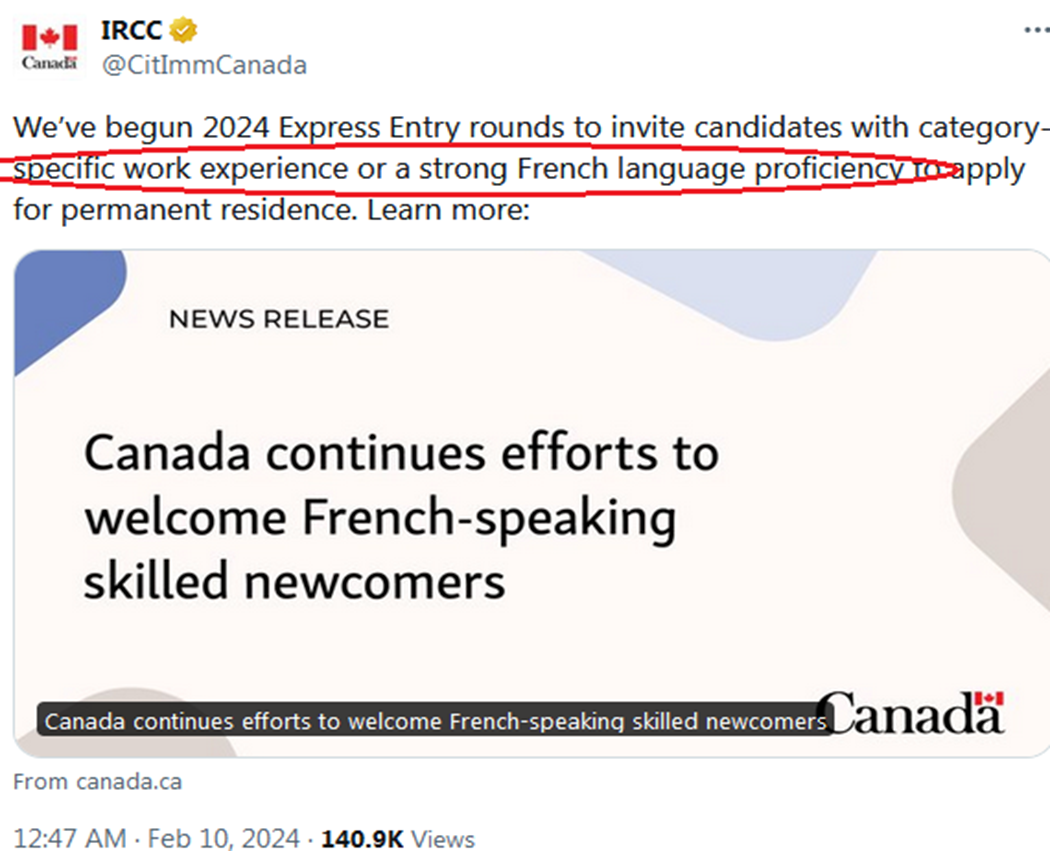 As per the statement from Canadian Immigration Minister Marc Miller, as of this month, 2024 Express Entry rounds have begun. They invite potential candidates with category-specific work experience or a strong French language proficiency to apply for PR Visa. In his statement Minister Miller said,